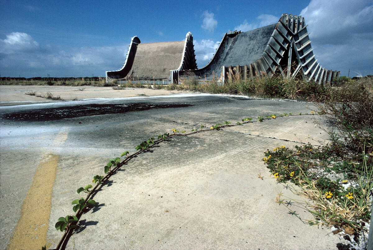 In Burri’s 1986 book “An American Dream: Photography from the Worlds of NASA and the Pentagon,” his images of an abandoned launching zone suggest both America’s eagerness to win the space race and the ruins of an empire, as nature attempts to take over.