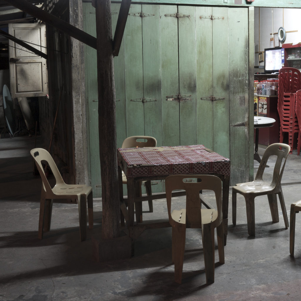 Sim’s own photographs focus predominantly on landscape too, created at sites of familial and political import. An image of a poignantly empty table and chairs signals, through its absences, the half million people resettled into camps, divided along political and racial lines; another precursor to Vietnam; specifically the ‘strategic hamlets’ policy. She photographs a ‘river of blood’, as it was locally known, because of bodies thrown into it, which at the same time carries a reminder of the time her great-grandmother said she ‘wished to cool herself’ in the water, understood as a euphemism for a strong wish to die. This is a clue to another absence, which haunts this exhibition: that of Sim’s deported leftist grandfather, whose life she commemorates in One Day We’ll Understand, and who was subsequently executed in China. Her grandmother, whose silence on the subject of her late husband wholly configured the life of her five children, is the impetus for a new work, She Never Rode that Trishaw Again, which weaves family archival images with a script of familial anomalies, questions and reminiscences. The legacies of colonial rule are far-reaching, embedding estrangements, confusion and states of indeterminacy into families who were subjected to it and continue to be shaped by it.