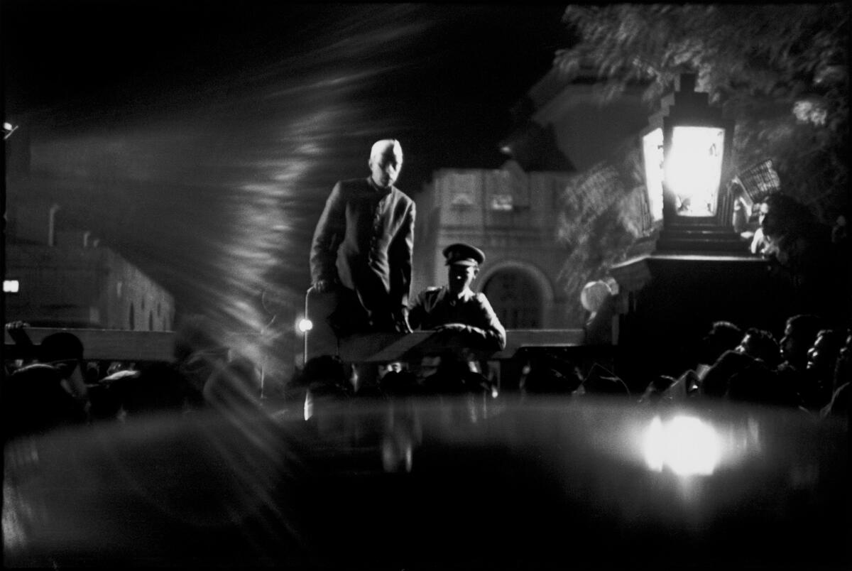 The exhibition is in fact notable in its lack of thematic structure. The subjects vary from Ernst Haas’s behind-the-scenes images of The Land of the Pharaohs film set, to Inge Morath’s portraits of the upper-class London neighborhood of Mayfair, to Henri Cartier-Bresson’s images of Gandhi the day before his death in 1948 and the events immediately following his assassination.