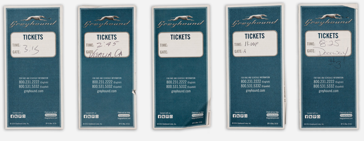 Greyhound Bus Tickets purchased by Matt Black as he travelled across the USA