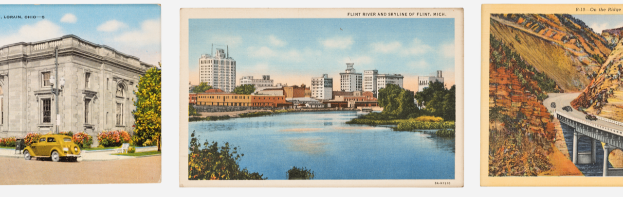 From 'Reading American Geography' - Historic postcards from the destinations that were visited