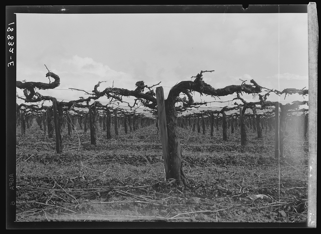 Dorothea Lange Tulare County, California. Vineyard during pruning. 1939.