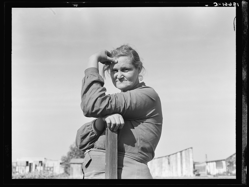 Dorothea Lange Arkansas mother come to California for a new start, with husband and eleven children. Now a rural rehabilitation client. Tulare County, California. 1938.