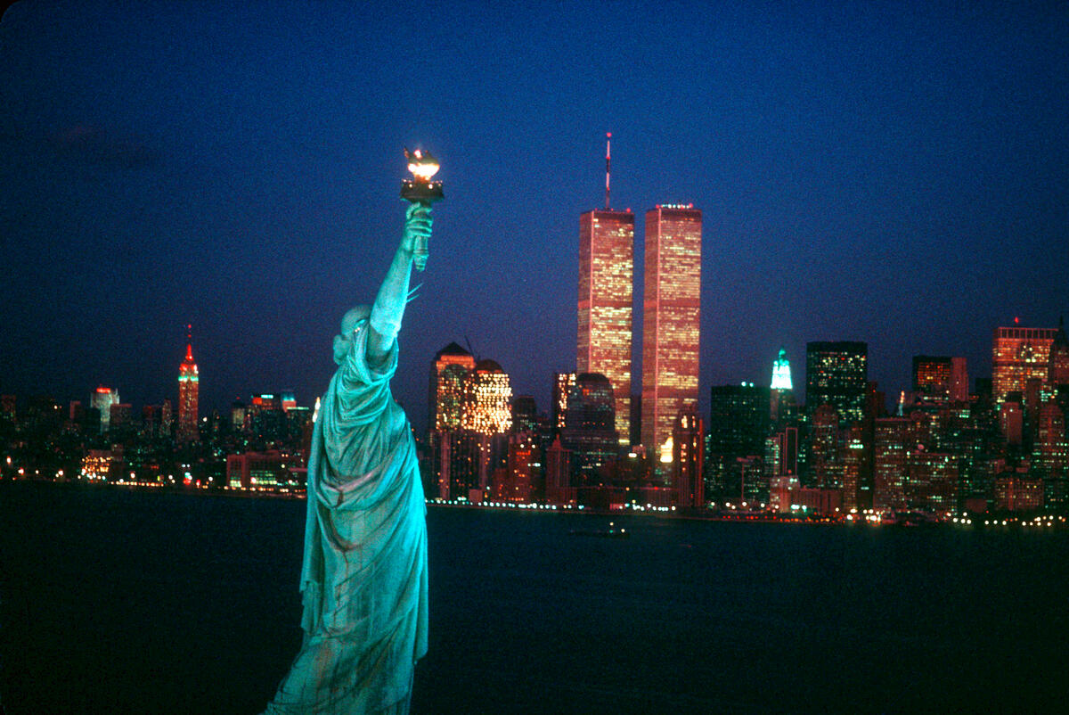“He dressed in a Turnbull & Asser shirt, lovely silver cufflinks, and all his lenses. I had my little camera with two rolls of film and a little scarf tied around my neck. We were in the air for a long time photographing, swooping down past the World Trade Center and Statue of Liberty. The sun was setting and the city lights were coming on. I ran out of film just as the pictures were getting really interesting. We landed in Midtown. I said, ‘That was exciting. What do you do for a second date?’”