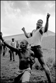 Ian Berry | Living Apart A tribal fight champion (standing) postures before an illegal gold mine fighter he went on to lose to. Gauteng, South Africa. 1961. © Ian Berry | Magnum Photos