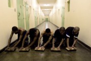 Prisoners perform 'pasvang'. Pollsmoor Maximum Security Prison, Cape Town, South Africa. 2004.