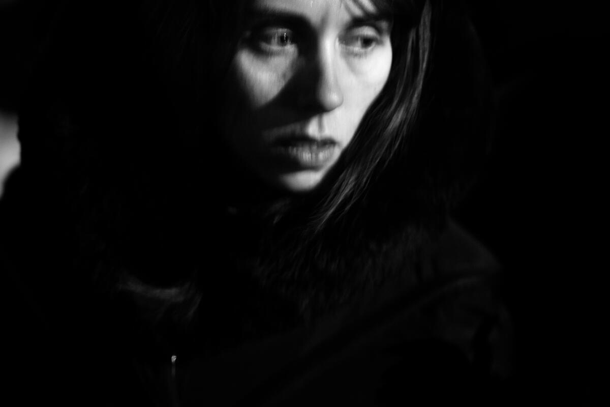 A Ukrainian refugee crosses the border by foot into Medyka, the busiest pedestrian crossing on the Poland-Ukraine border. From there they are bussed to reception centres, where they wait to learn t