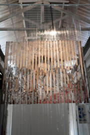 Installation view of Sticky-tape Transfer "Untitled" (Michelle, Pasvang / Pasvang Michelle), side 1. Maboneng Precinct, Johannesburg, South Africa. September 3, 2023. © Mikhael Subotzky/Magnum Photos