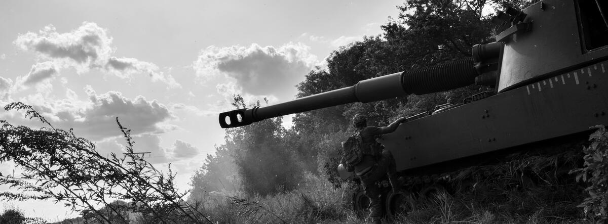 Ukranian tank fires at Russian positions in the Donetsk Oblast. Ukraine, 2023.