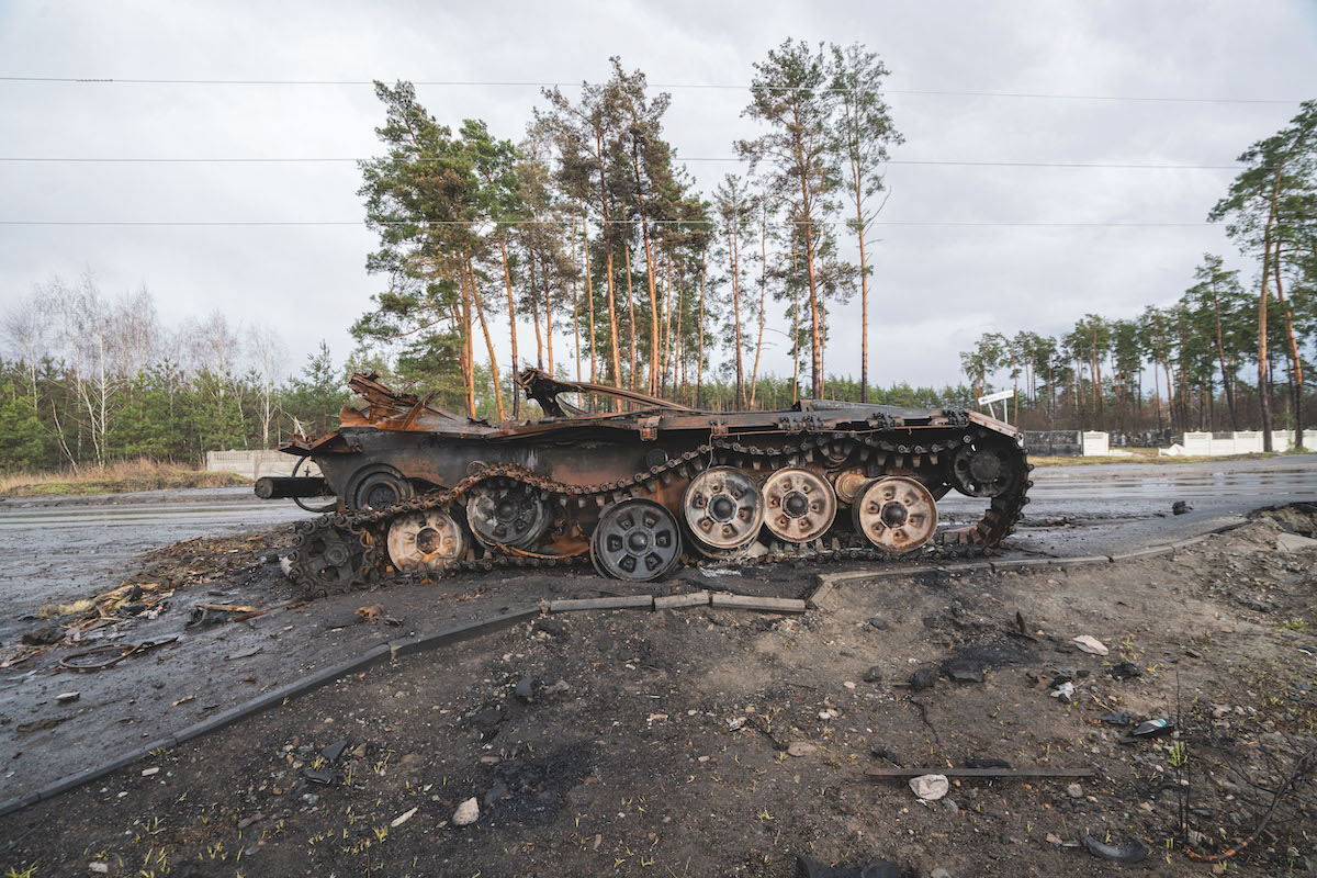 Destroyed Russian tanks. Bucha, Ukraine. April 8, 2022. © Larry Towell / Magnum Photos