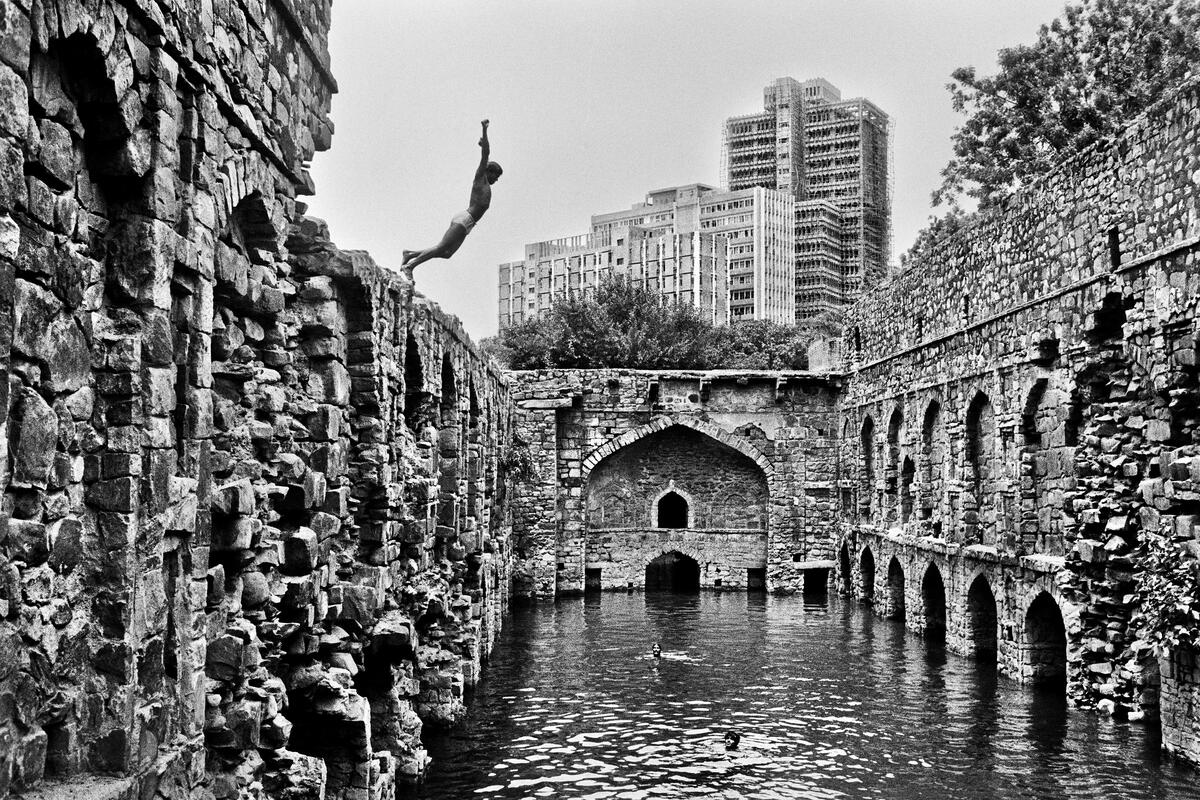 “Above all,” he recalled in his book Delhi about first discovering photography, “what fascinated me about the camera, was that each time I viewed the world through the lens, I felt all my energies, my concentration, were focused on what I was seeing. Through this instrument, I found I could take a closer look at the world around me.” One of his earliest images won the Nikon International Contest, allowing him to acquire professional wide angle and telephoto lenses for the first time.