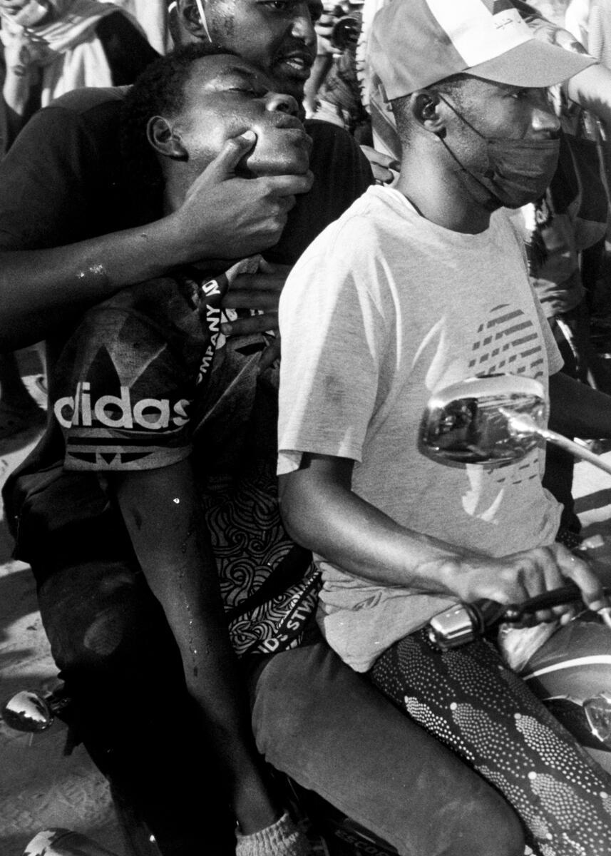 Blue; Children of January, was his first series to directly explore the political climate in Sudan, beginning with the Sudanese revolution of 2018–2019, which led to the Sudanese Armed Forces overthrowing the then decades-long president Omar al-Bashir. Photographs of protests, daily life in the streets of Khartoum, and TV footage of defining moments of Sudan’s past political history all give form to Basheer’s personal experience during a major period in the history of modern-day Sudan.