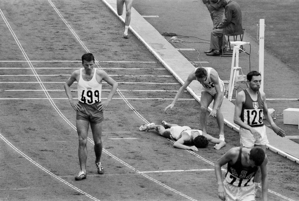 5,000 meter race. Defeat of French athlete Michel Jazy. Tokyo, Japan. 1964.