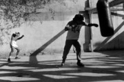 Boxers train in a gym set in a courtyard. State of Coahuila, Monclova, Mexico. 1983.