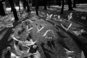White doves are kept at the Yasukuni Shinto shrine, dedicated to military personnel killed during Japan's wars. They are considered to be spirits of the departed. Tokyo, Japan. 2000.