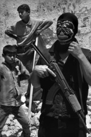 Abbas A militant of the Islamist party Hamas with a face mask showing the Jerusalem Dome of the Rock, most sacred for Muslims. Gaza, Palestine. 2004. © Abbas | Magnum Photos