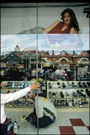 Reflections and a footwear showroom. Delhi , India. 1990.