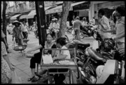A busy intersection of the old quarter clogged with people and motorbikes. Hanoi, Vietnam. 2008.
