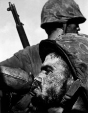US Marine drinks out of his canteen at the Battle of Saipan Island during the Pacific Campaign. World War II. 27 June, 1944.