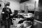 Abbas The bodies of four generals, executed after a secret trial held at Ayatollah Khomeini's headquarters, at the Refa Girls' School. Their bodies lie at the morgue. Top left General Khosrowdad, top rig (...)