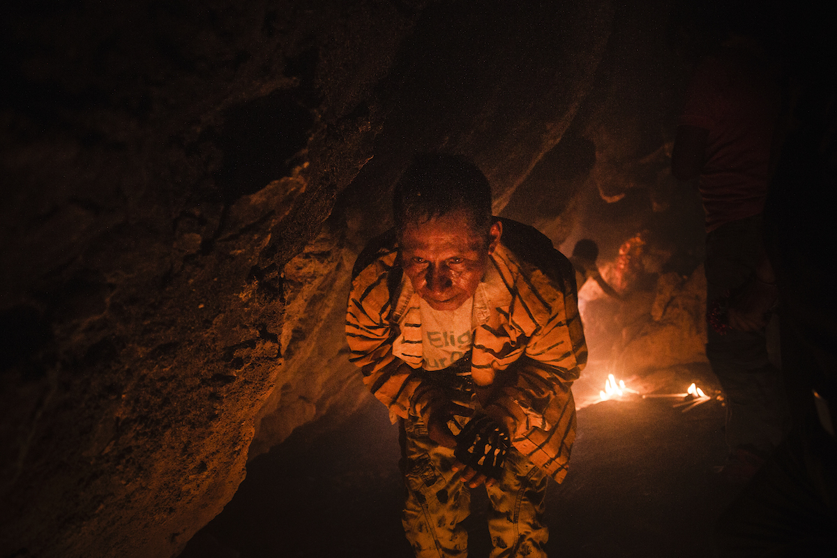 Tiger fighter inside a cave (sacred space) in the hill of Cruzco. Zitala, Guerrero, Mexico. 2017. © Yael Martínez / Magnum Photos